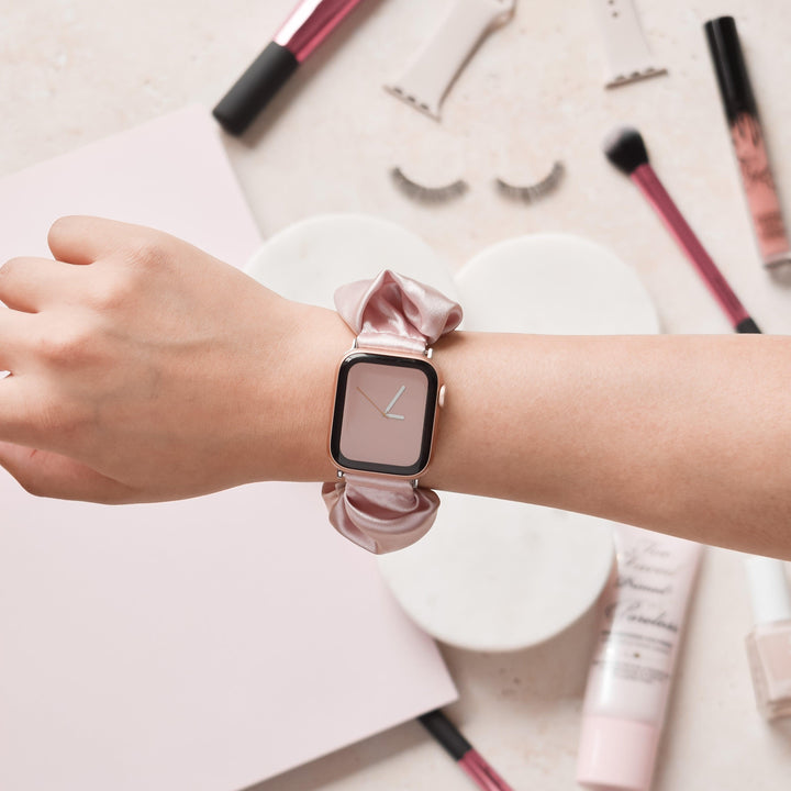 Our super cute Scrunchie Apple Watch Strap will have you blushing with compliments. This might just be the cutest Apple Watch accessory we've ever seen! Smooth, silky satin delivering ultimate comfort.