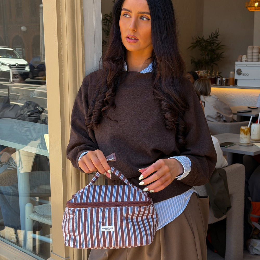 The Travel Towel Vanity Case - Brown & Blue Stripes is designed to keep all your beauty essentials in one place, whilst giving you something super cute to look at on your dresser. Whether you’re glamming on the go, getting ready with the girls, or going on a getaway, we've got you.